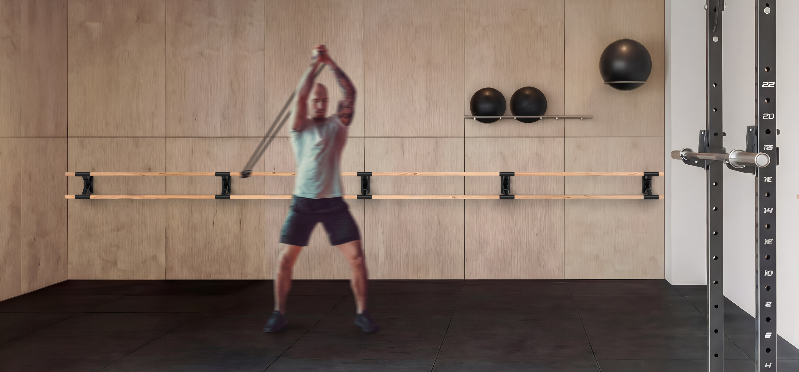 Alle Halterungen der Fitness-Kollektion folgen derselben Konstruktionslogik: maximale strukturelle Stabilität und zuverlässige Performance bei intensiver Nutzung. Die Kombination aus Stahl und Naturholz ermöglicht funktionale Trainingsräume für dauerhafte professionelle Nutzung. Alle Modelle erlauben eine präzise Verbindung der Holzstangen innerhalb der Halterungen und erleichtern so die Gestaltung durchgehender Trainingslinien entsprechend der Raumaufteilung.