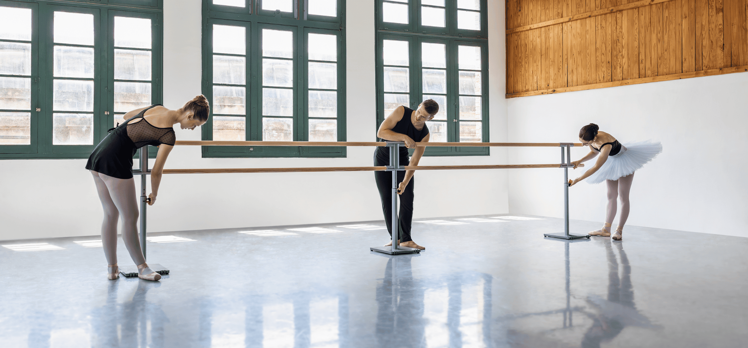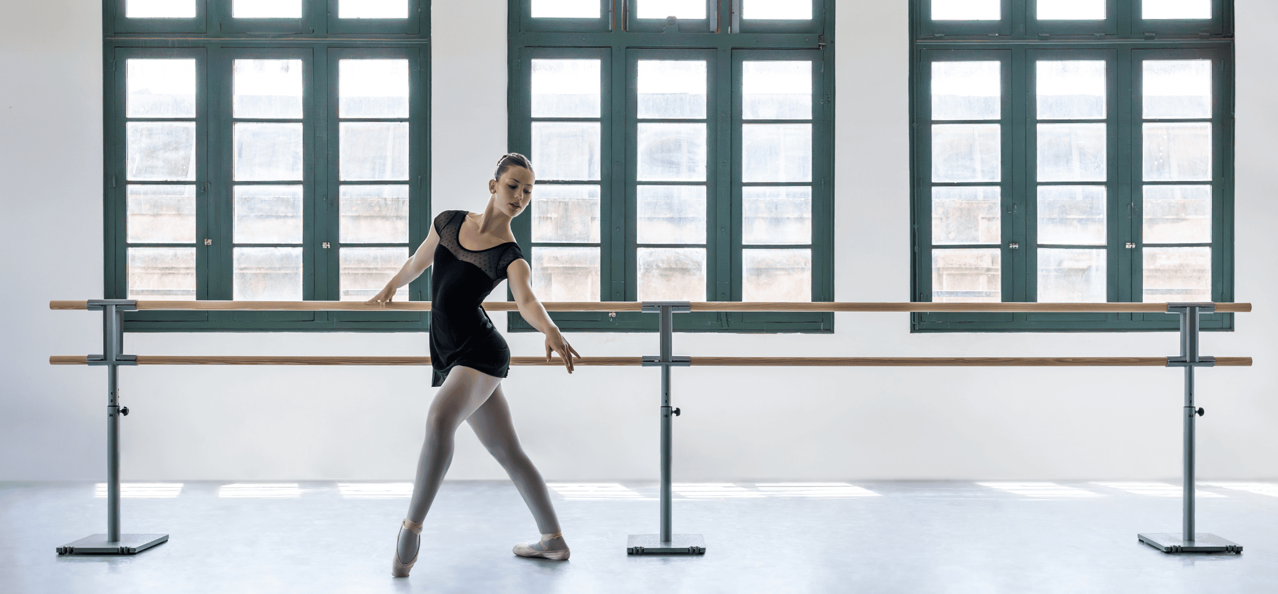 Il design esclusivo dei supporti doppi di Dinamica Ballet distribuisce la pressione che esercita il ballerino sulle sbarre di legno. La grande stabilitá dell’insieme permette a ballerine di età e stature diverse di esercitarsi allo stesso tempo. Questa sbarra per la danza é disponibile con sbarre di legno di 2m e 3m.