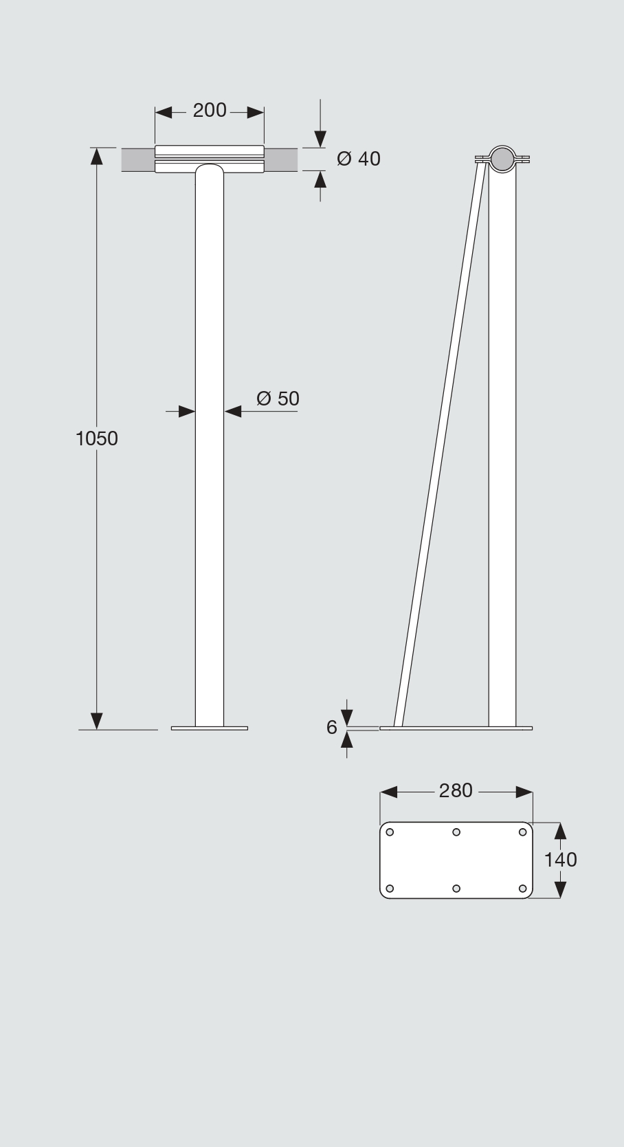 Materiales:  Columna y soporte de acero en color blanco RAL 9016 o negro texturizado RAL 9005